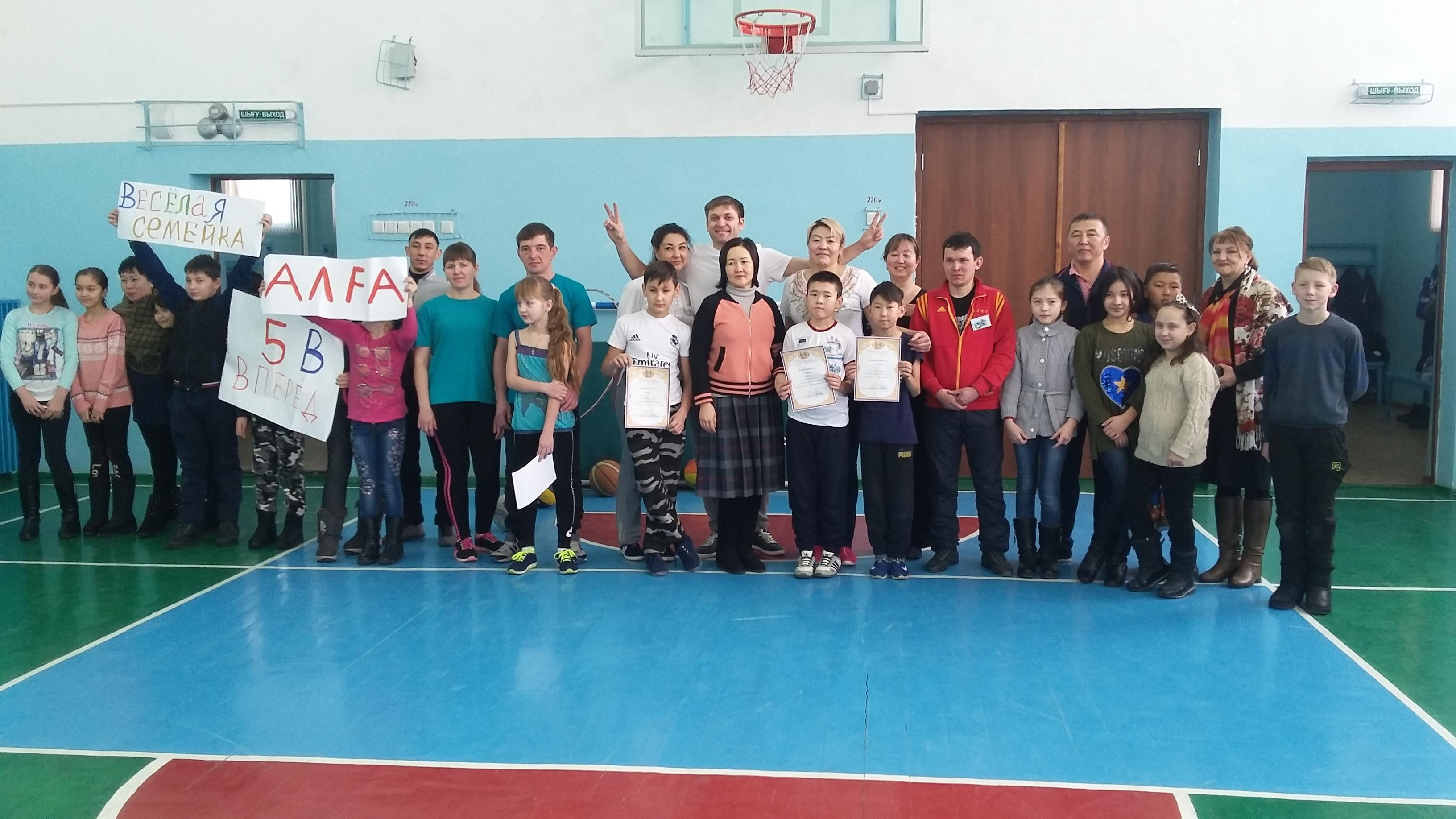 В этом соревновании приняли участие родители и дети 5 классов. Были проведены такие игры как : бег, прыжки с обручем, забивание мяча в ворота и многое другое. Итоги соревнования: среди русской школы 1 место 5 Д класс, 2 место 5 Б класс и 3 место 5 В классы, среди 5 классов с государственным языком обучения 1 место занял 5 Г класс.
