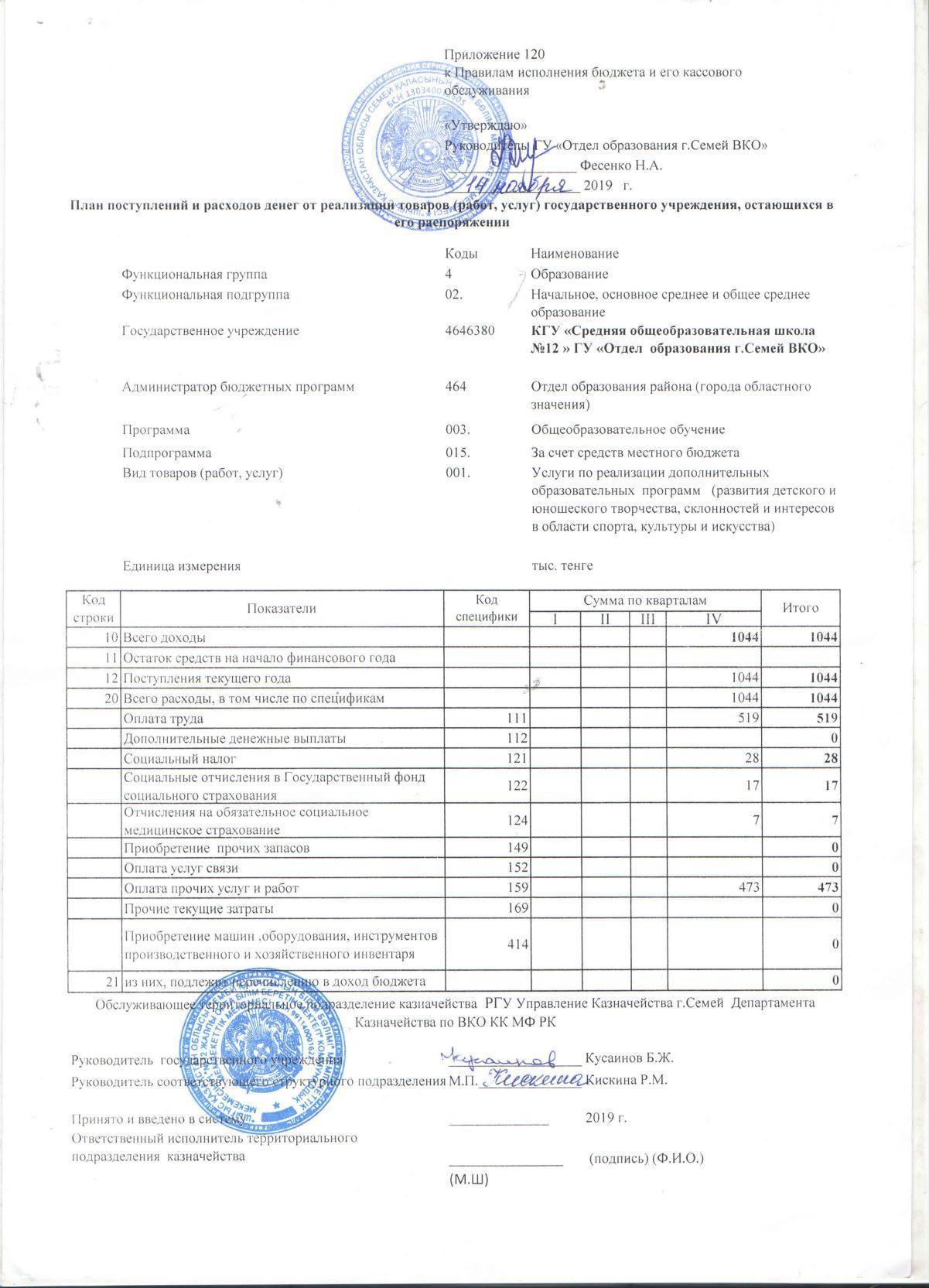 План поступления и расходов денег от реализации товаров (работ,услуг) 2019 год » Средняя общеобразовательная школа № 12
