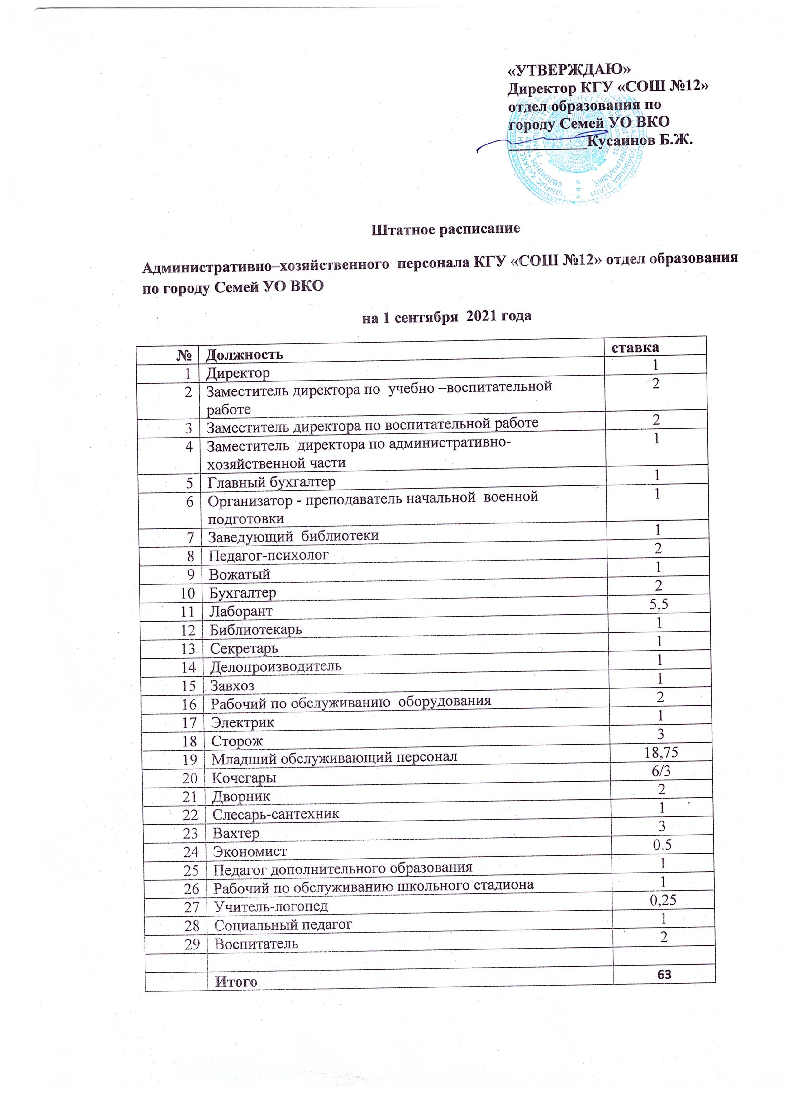 Штатное расписание на 2021-2022