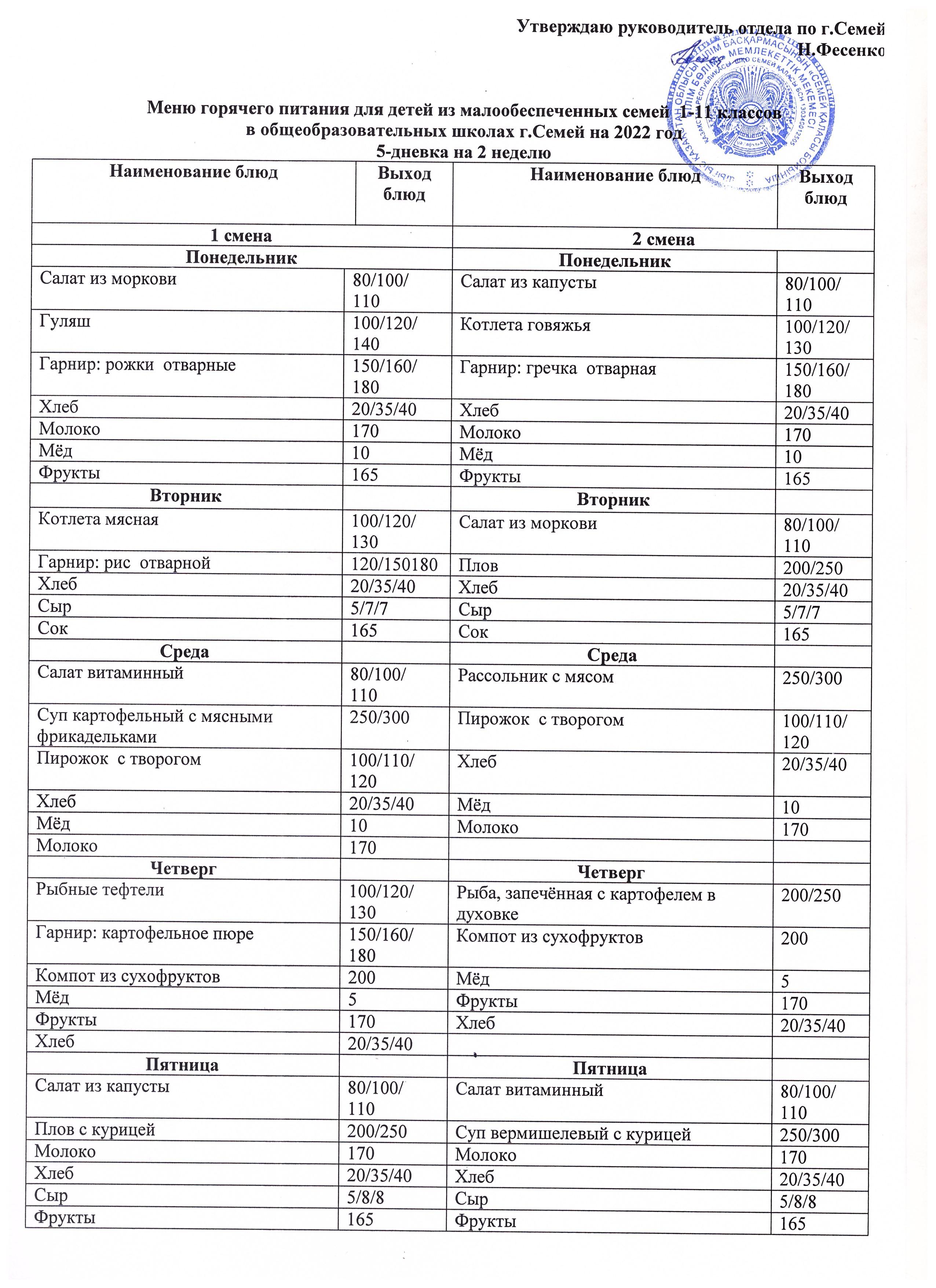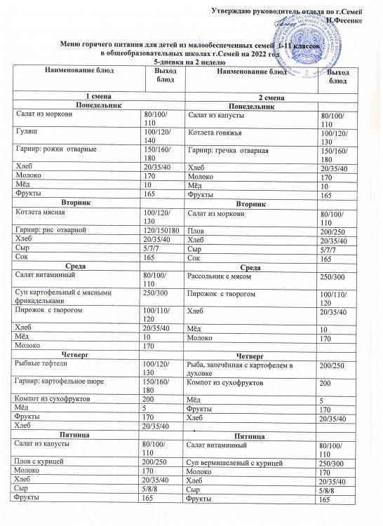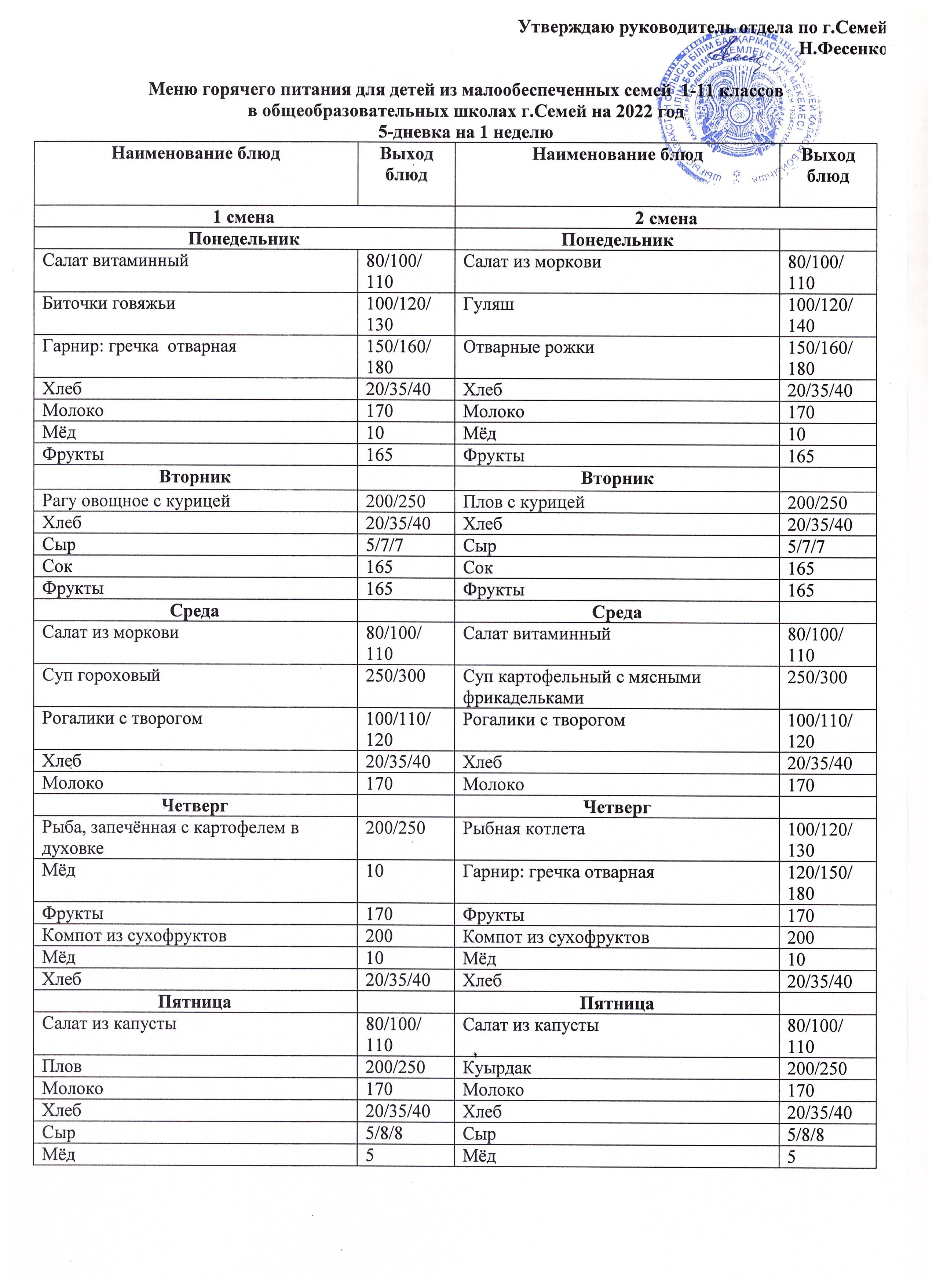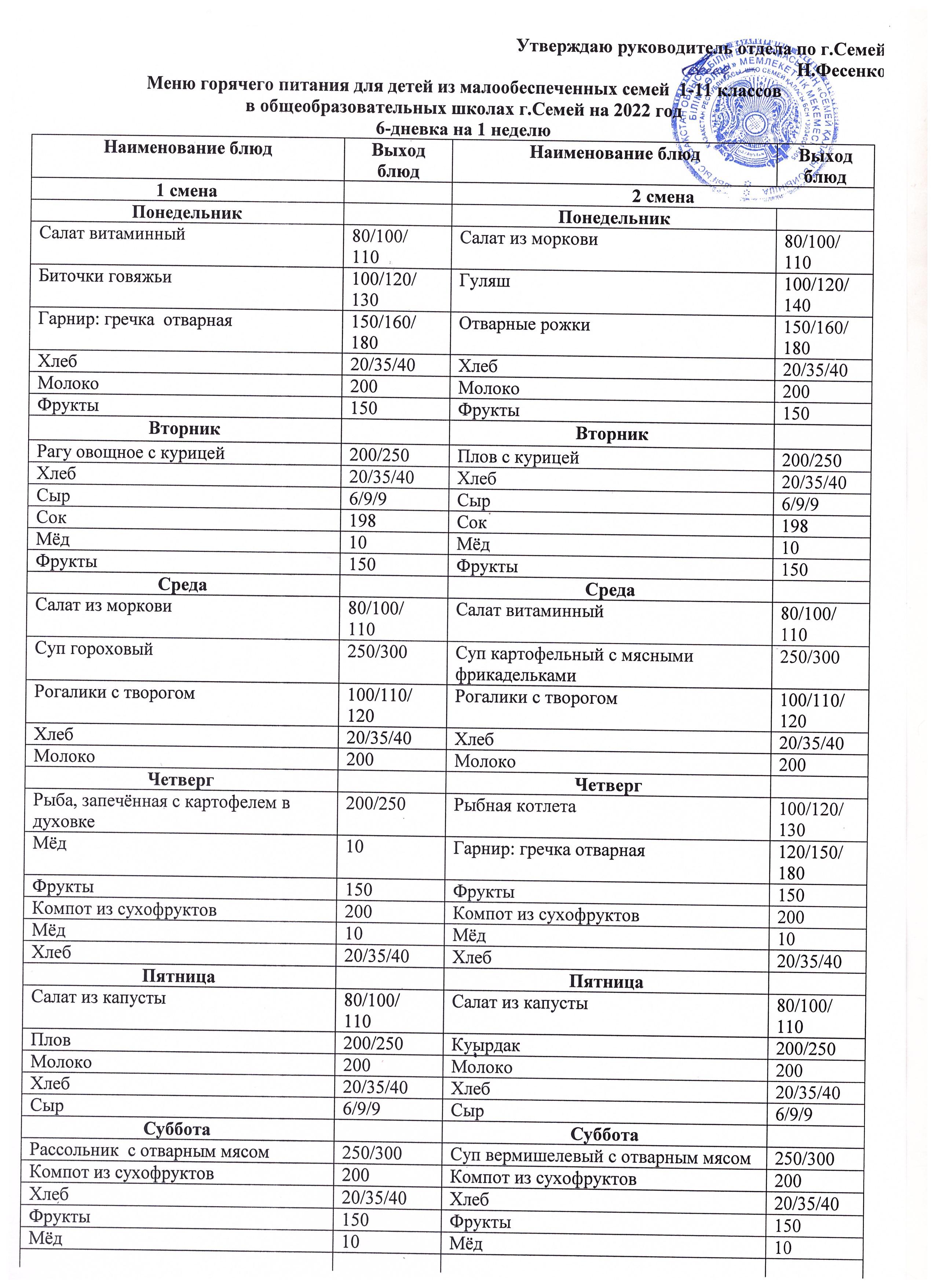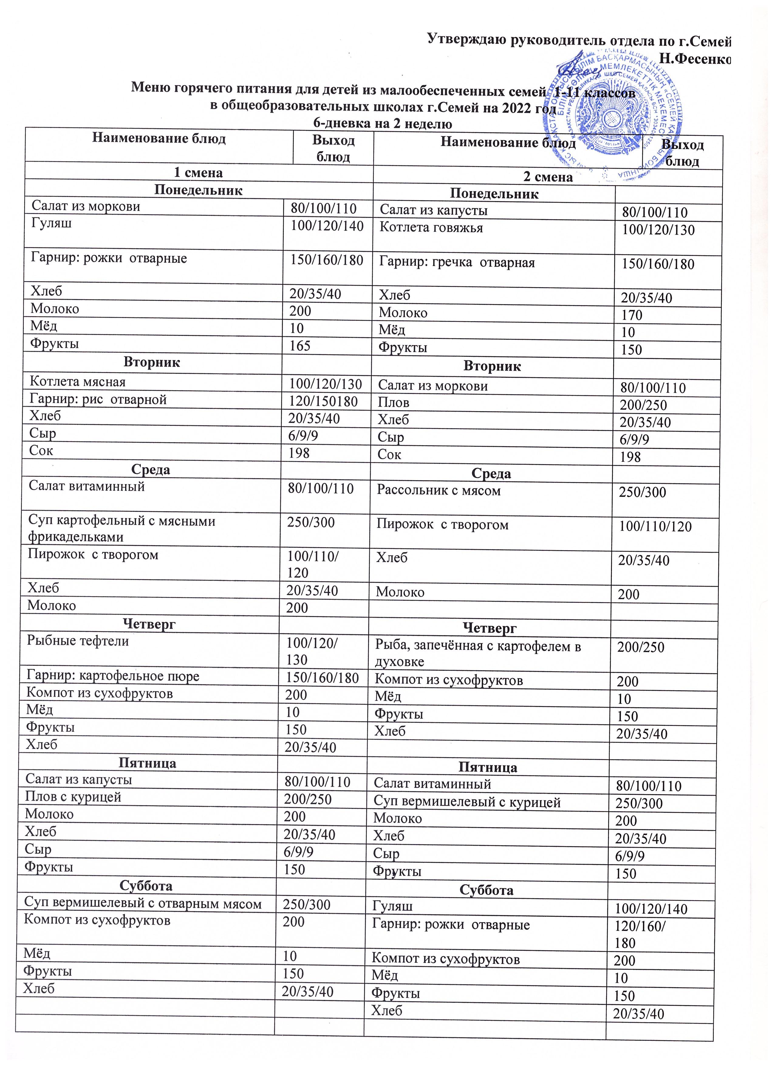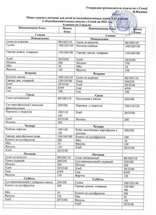 Меню КГУ "СОШ №12"