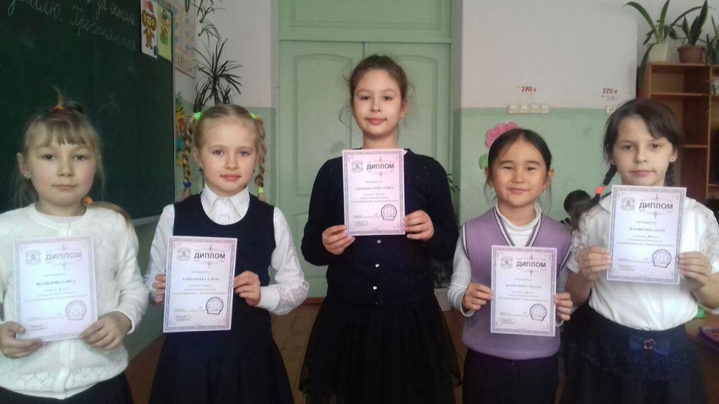 10 апрель 2018 0 1 2 3 4 5 Победители и призёры международных конкурсов Победители международного конкурса "Русский медвежонок - языкознание для всех". Учащиеся 2 класса "А":Шаталова Алиса - 1 местоТамбовцева Алина - 1 местоСкоробогатова Арина - 1 местоКурмашова Айдана - 2 местоТерещенко Дарья - 2 местоПризёр областного интеллектуального конкурса "Малахит":Ученица 2 класса "А" Скоробогатова Арина.