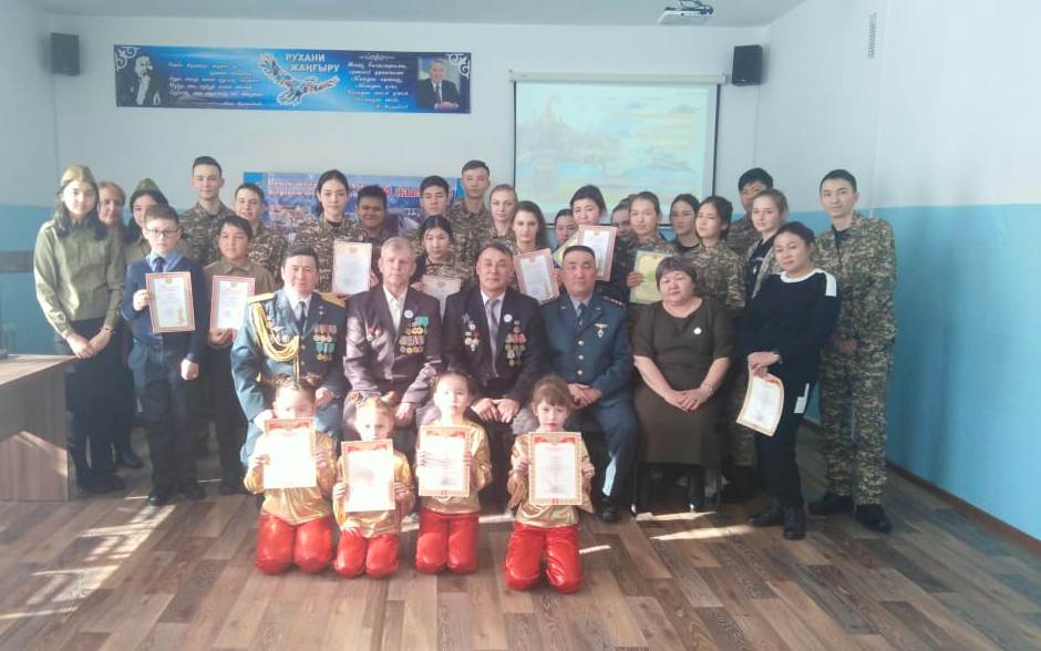 Қадірменді қонақтарымызға, мектеп оқушылары батылдығы мен батырлығы үшін алғыс айтып, жауапты концерт берді. Сонымен қатар 10-11 сынып оқушылары арасында әскери-спорттық эстафета өткізілді.