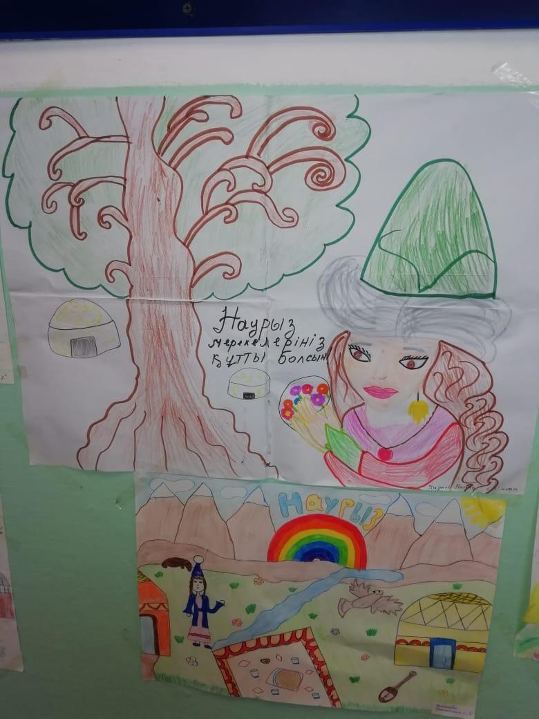В педдверии праздника Наурыз в нашей школе прошел ряд мероприятий, посвященных данной теме. На первом этаже школы был организован конкурс рисунков "Қош келдің Наурыз!", среди учащихся 5-11 классов.