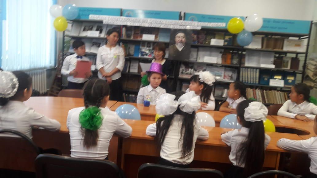 23.11.18ж. қазақ тілінде оқитын бастауыш сыныптарының онкүндігі аясында кітапханада 4-ші сыныптар арасында "Абай оқулары" мәнерлеп оқу өткізілді. Мұғалімі: Ғалыпова Қ.М