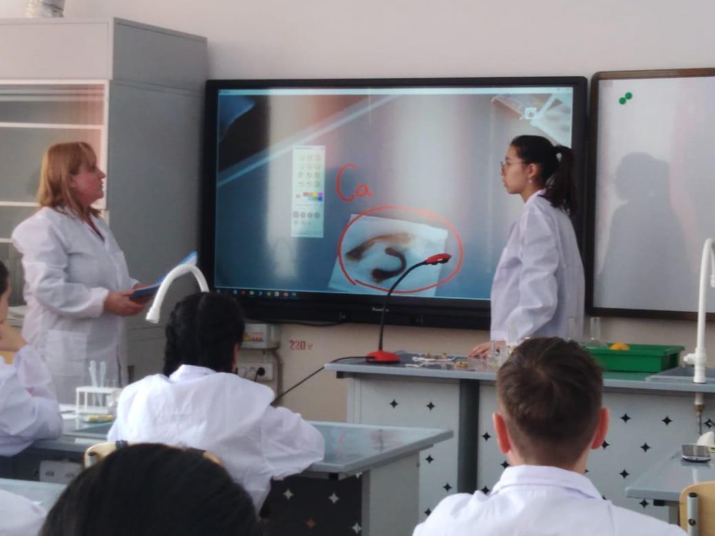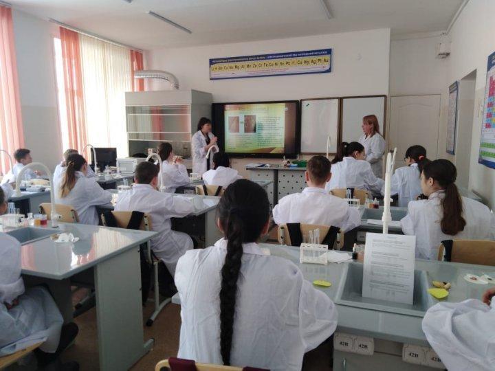27.02.2019 ЖОББ 12 мектебінде 7 сынып оқушыларына «Химия және өмір» тақырыбында мастер-класс өткізілді. Химия және биология мұғалімдері бұл мастер-классты ағылшын тілінің элементтерімен өткізді. Балалар эксперименталды дағдылары мен қабілеттерін ағылшын тілінде көрсетті.