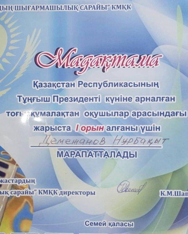 Итоги соревнований по тогызкумалаку за 2018-2019 учебный год. Ученики 5 "Ж" класса: Демежанов Нурбакыт, Бакбергенулы Шынгыс, Керимбаев Бекнур.